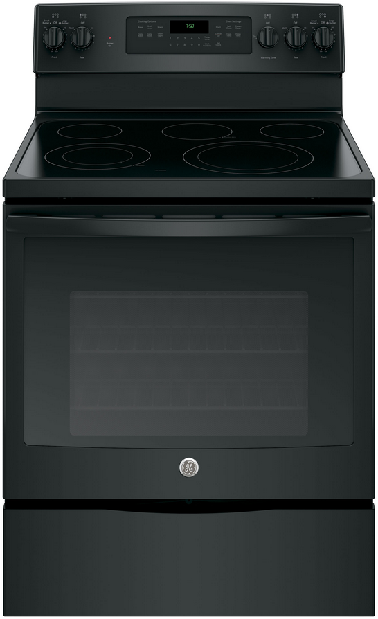 GE® 30" Free Standing Electric Range-Black with 5.3 cu. ft. total capacity, fast preheat, self clean and halogen oven lightRead More